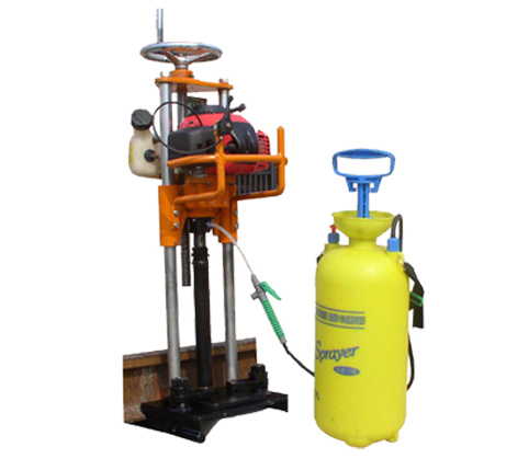 該機(jī)采用主機(jī)和夾具分體方式,具有快速下道特點(diǎn),在作業(yè)中如需下道,可直主機(jī)一同拔出,拿下底座,將主機(jī)放到安全地方,待火車通過(guò)后先將底座放置在鋼軌上,調(diào)整好底座,將主機(jī)導(dǎo)向桿與底座導(dǎo)向套對(duì)接,可繼續(xù)鉆取。提高了工作效率,減輕了工人的勞動(dòng)強(qiáng)度,是線路鋪設(shè)和維修的必備工具。