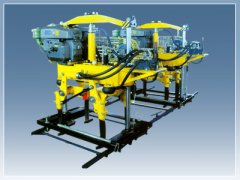 XYD-2A型:兩臺搗固機(jī)放置在同一走行架上作業(yè),復(fù)線地段作業(yè)時配置單側(cè)下道架,兩臺搗固機(jī)下道在同一下道架上(XYD-2A1);單線地段作業(yè)時配置雙側(cè)下道架,兩臺搗固機(jī)分別下道在兩下道架上(XYD-2A2)。下道架懸掛在走行架一側(cè)或兩側(cè),隨機(jī)走行。
